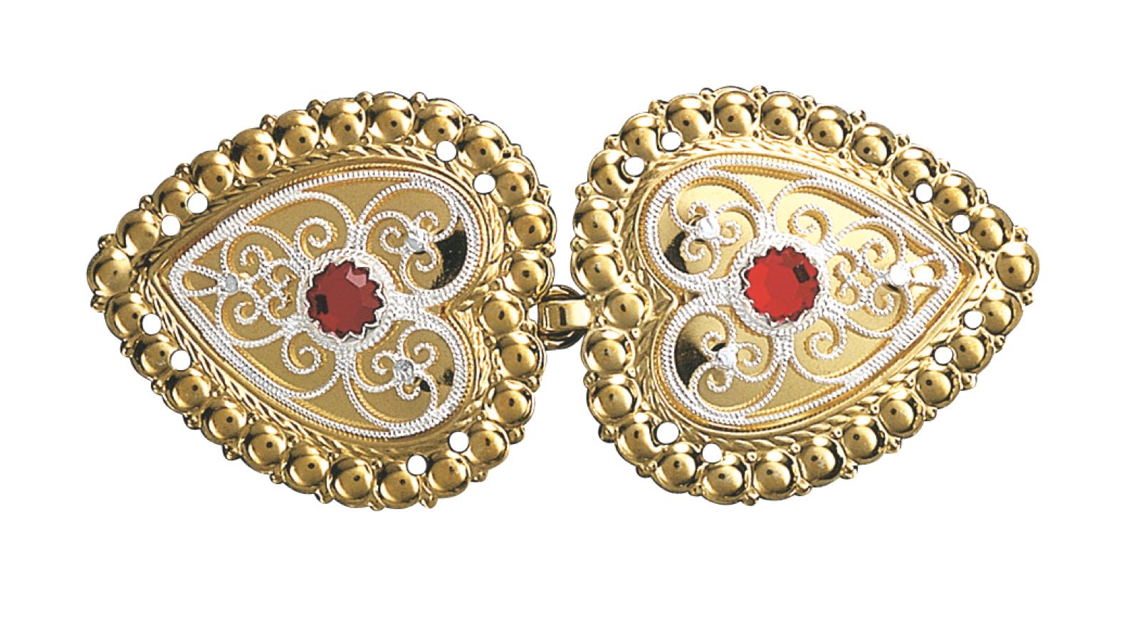 Capespenne med raud stein, forgylt/kvit