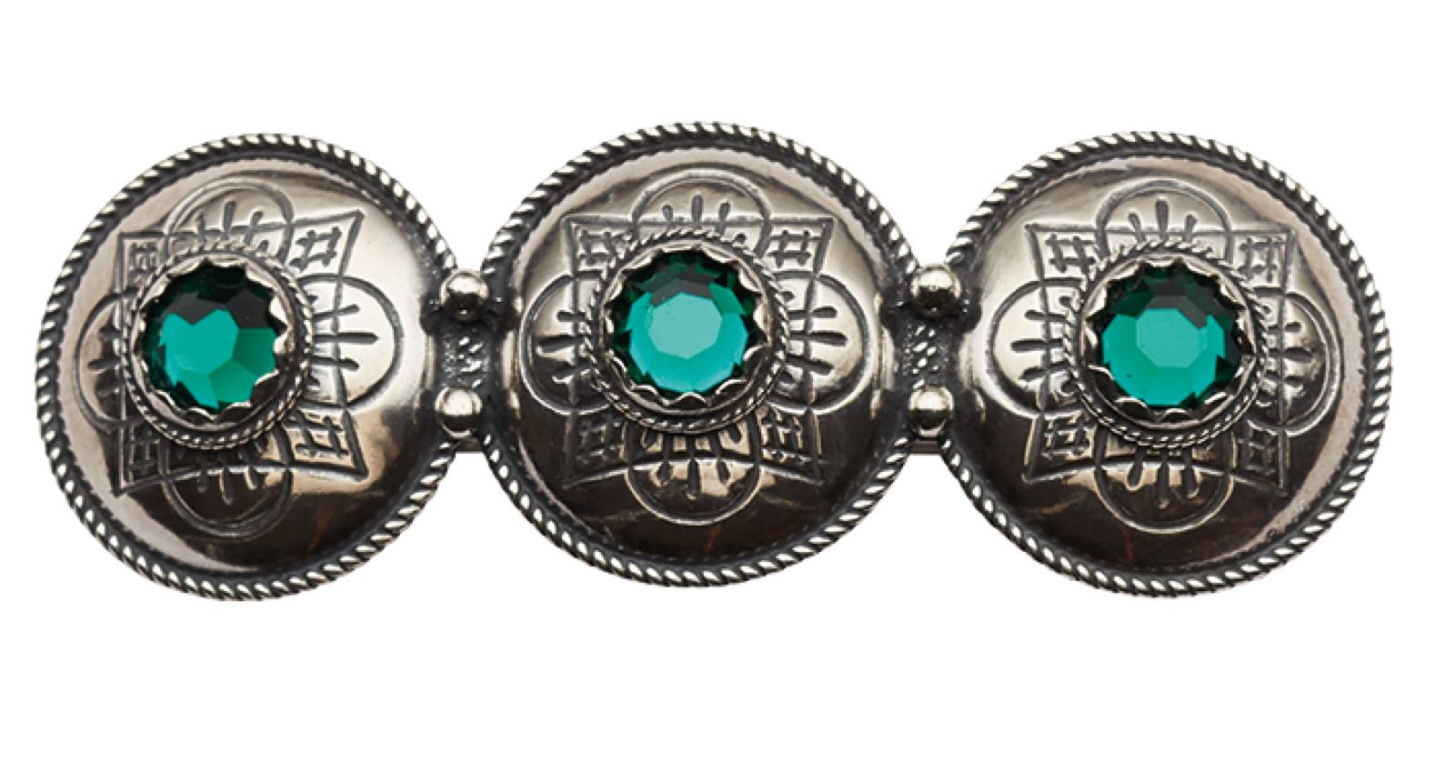 Hårspenne oline med grønn stein, oksidert