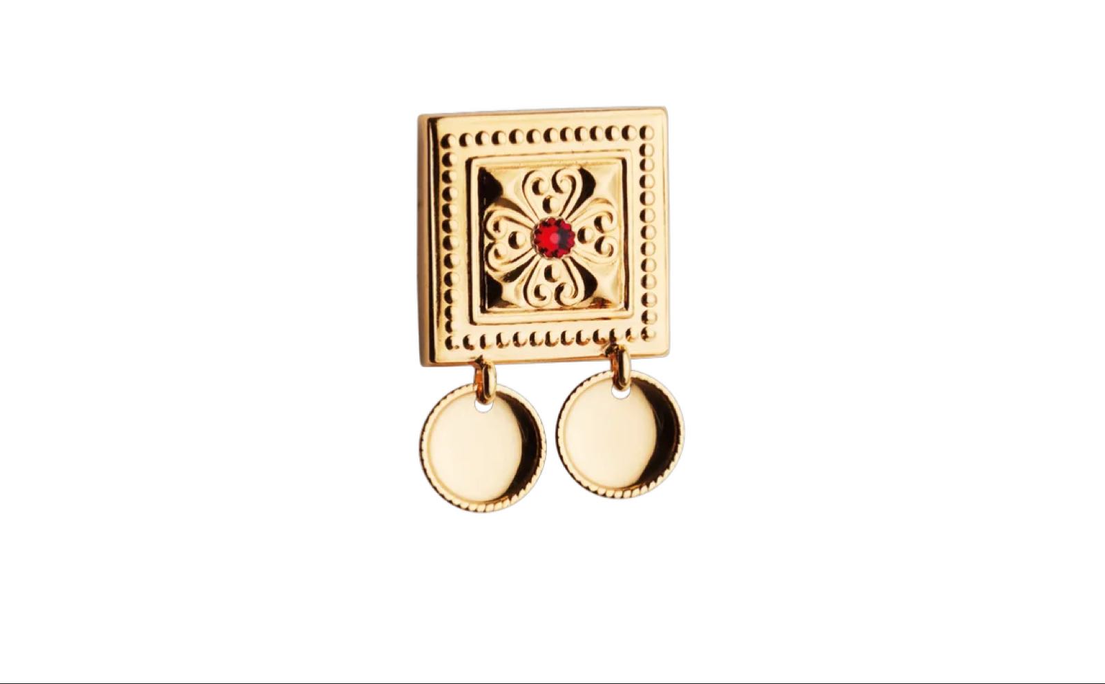 Beltestøl 2,6 cm med raud stein, forgylt SP